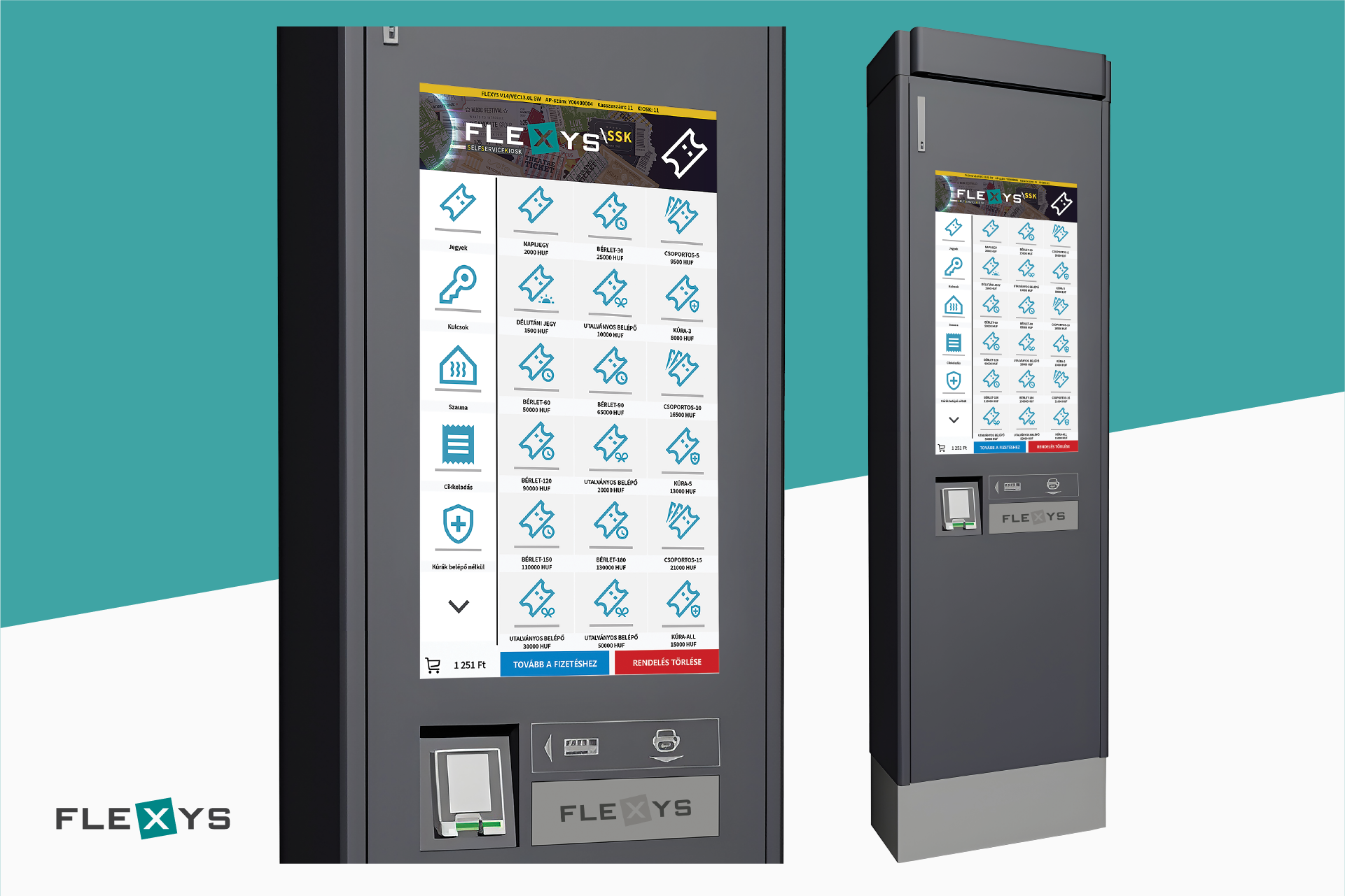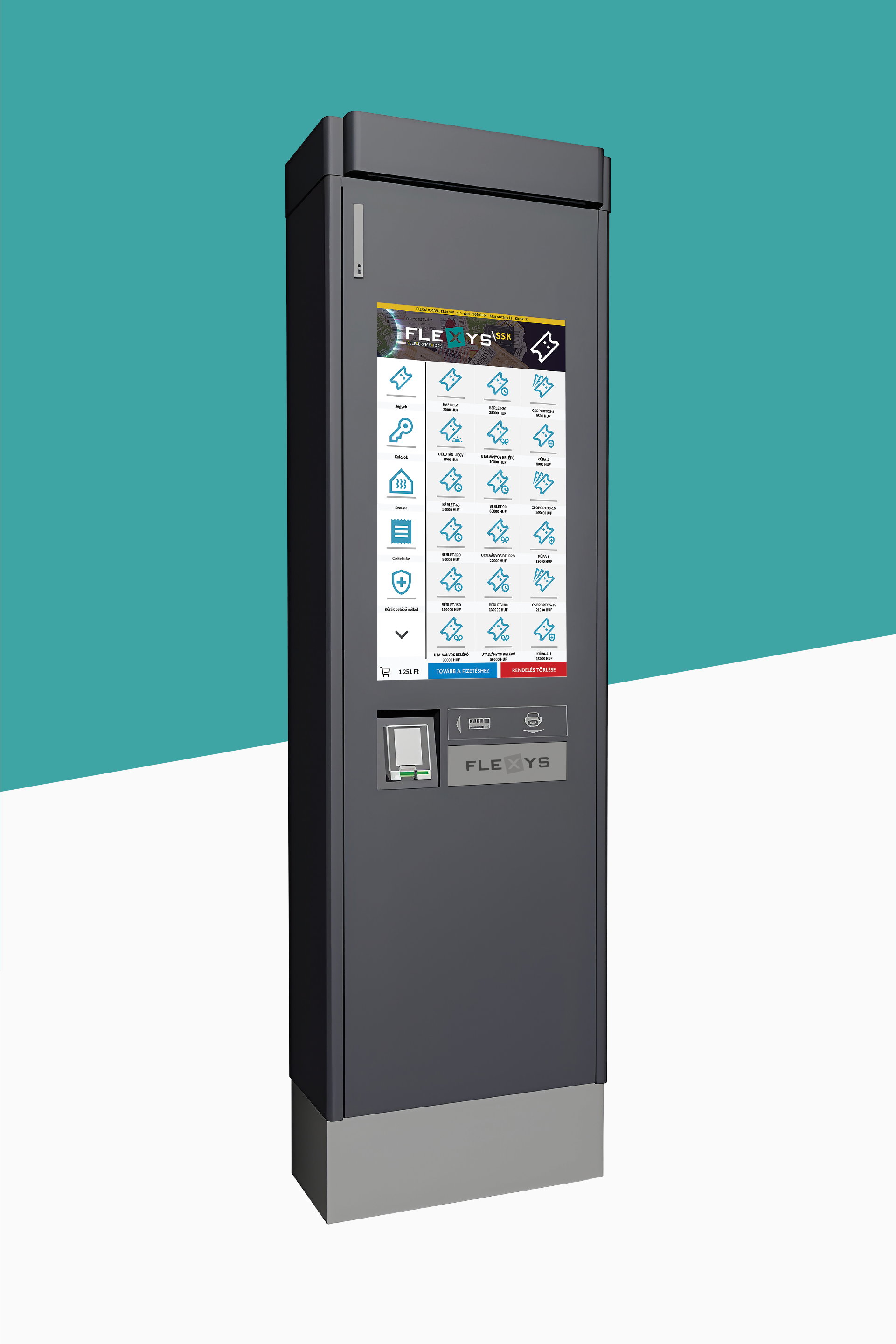 FLEXYS SSK - Self Service Kiosk / JEGYÉRTÉKESÍTŐ / FIZETŐAUTOMATA jegyek, belépők, parkolási díjak önálló kifizetésére